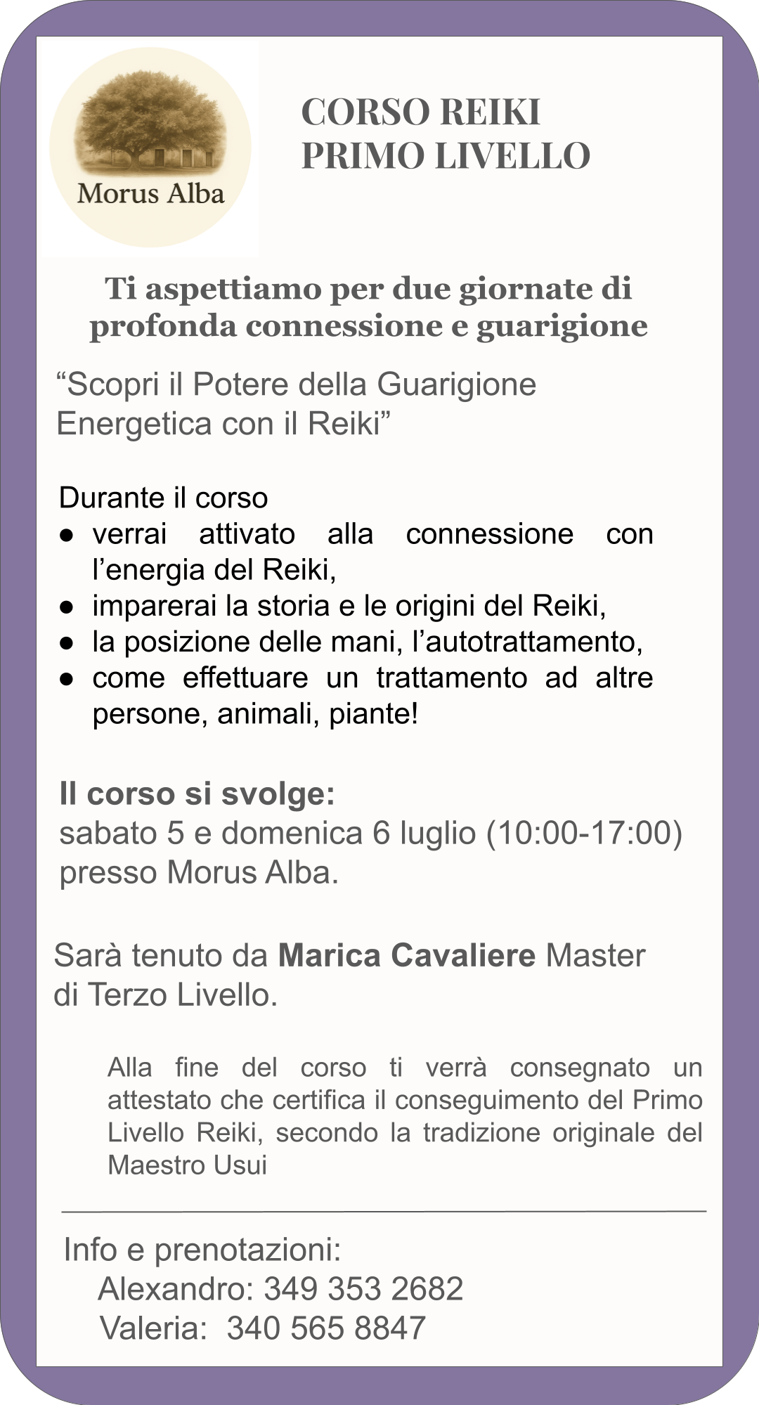 Alla fine del corso ti verrà consegnato un attestato che certifica il conseguimento del Primo Livello Reiki, secondo la tradizione originale del Maestro Usui