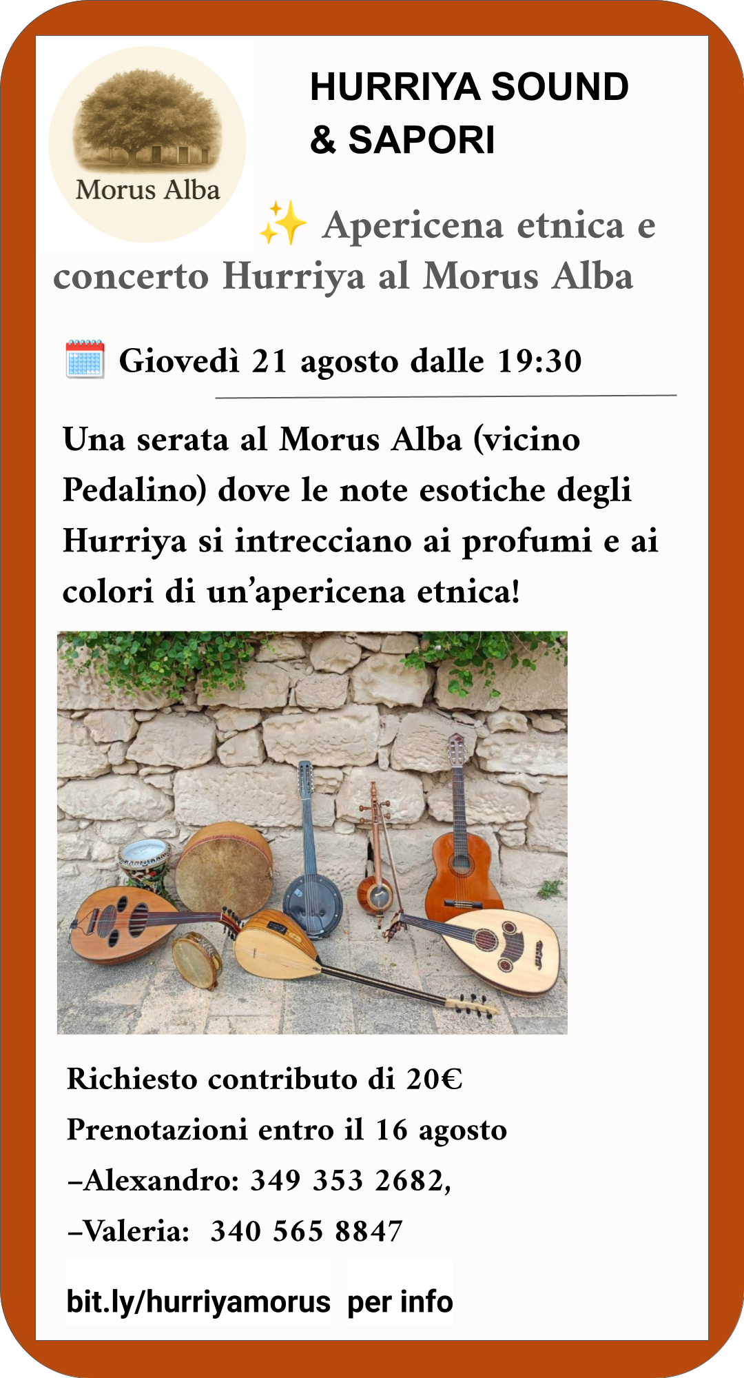 ✨ Apericena etnica e concerto Hurriya al Morus Alba